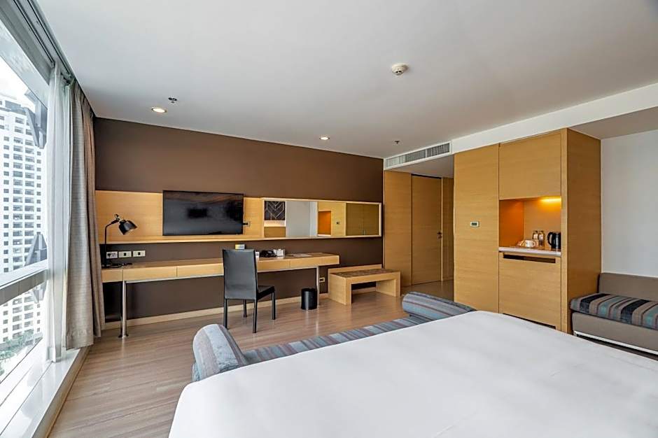 Bangkok's energy is just outside, while an outdoor pool invites sun-soaked downtime all year long. The on-site Luna Sky Garden Cafe serves Asian and International cuisines, adding a tasty stop between sightseeing and shopping.